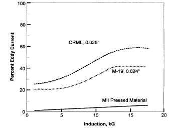 where the total core loss Pc will be higher than the core loss measured under sinusoidal flux conditions. One might anticipate that a material exhibiting a low eddy current loss component might enhance the performance of these types of motors.