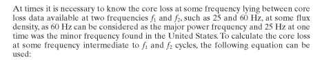 Calculation of Core Losses at Frequencies Intermediate to Two Frequencies for a Given Flux Density (Electric Motors)
