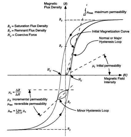 FIGURE 1.22 Magnetic hysteresis loop and characteristic parameters.