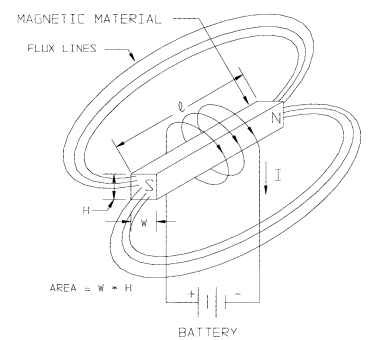 This field intensity is proportional to the current times the number of turns of wire per inch of magnetic material being magnetized: